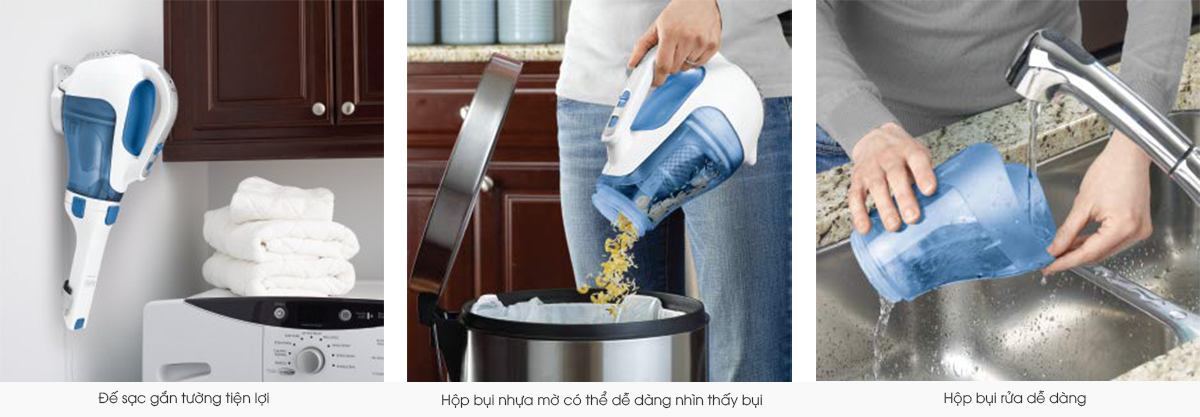 Hầu hết các thùng bụi đều trong suốt, vì vậy bạn có thể thấy chúng đầy, và rất nhiều trong số chúng chỉ yêu cầu một nút bấm để mở. Đôi khi, bạn có thể cần phải làm sạch bụi bẩn sâu từ thùng rác. Để thực hiện tác vụ bảo trì này, bạn có thể tháo hoàn toàn thùng rác, và bạn có thể rửa sạch bằng nước sạch. Khi nó khô hoàn toàn, chỉ cần lắp lại thùng rác vào máy hút bụi cầm tay. Nếu nó không thể tháo rời, bạn sẽ phải lau bên trong bằng một miếng vải ẩm.