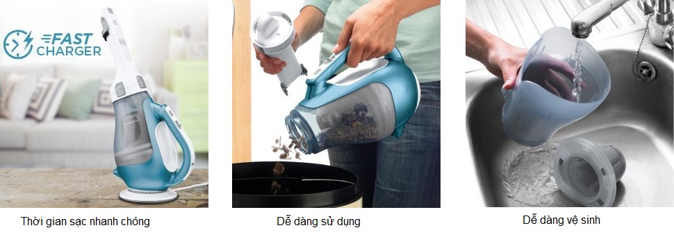 Máy hút cầm tay không dây của Black+Decker – thương hiệu số 1 Thế Giới về dòng máy hút cầm tay không dây, công nghệ pin Lithium mang lại sức hút mạnh mẽ để giúp lấy đi những mớ hỗn độn lớn như thức ăn và vụn rác. Thêm vào đó, thiết bị được tích hợp thêm đầu hút dài và gọn giúp thu gom tóc, lông thú cưng dễ dàng và khiến không gian ngôi nhà bạn lúc nào cũng sạch sẽ.