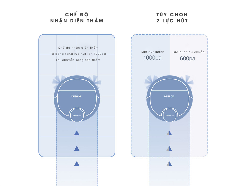 Deebot DN55 sở hữu tính năng nhận diện thảm cực kỳ tốt